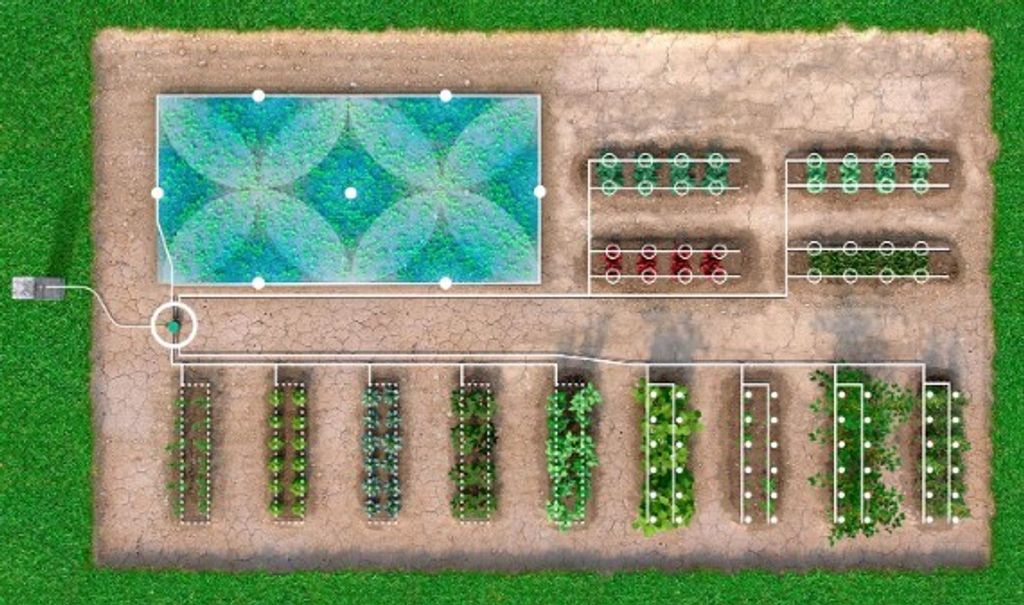 The Hydro-4 is the technological heart of your system: battery-operated timer, four solenoid valves and IP68 watertight valve box in a single product. You just have to connect it to the irrigation lines and programme it. It can run up to four independent lines (underground, above-ground and drip). In this diagram, you can see how an underground irrigation system can be set up with Hydro-4.